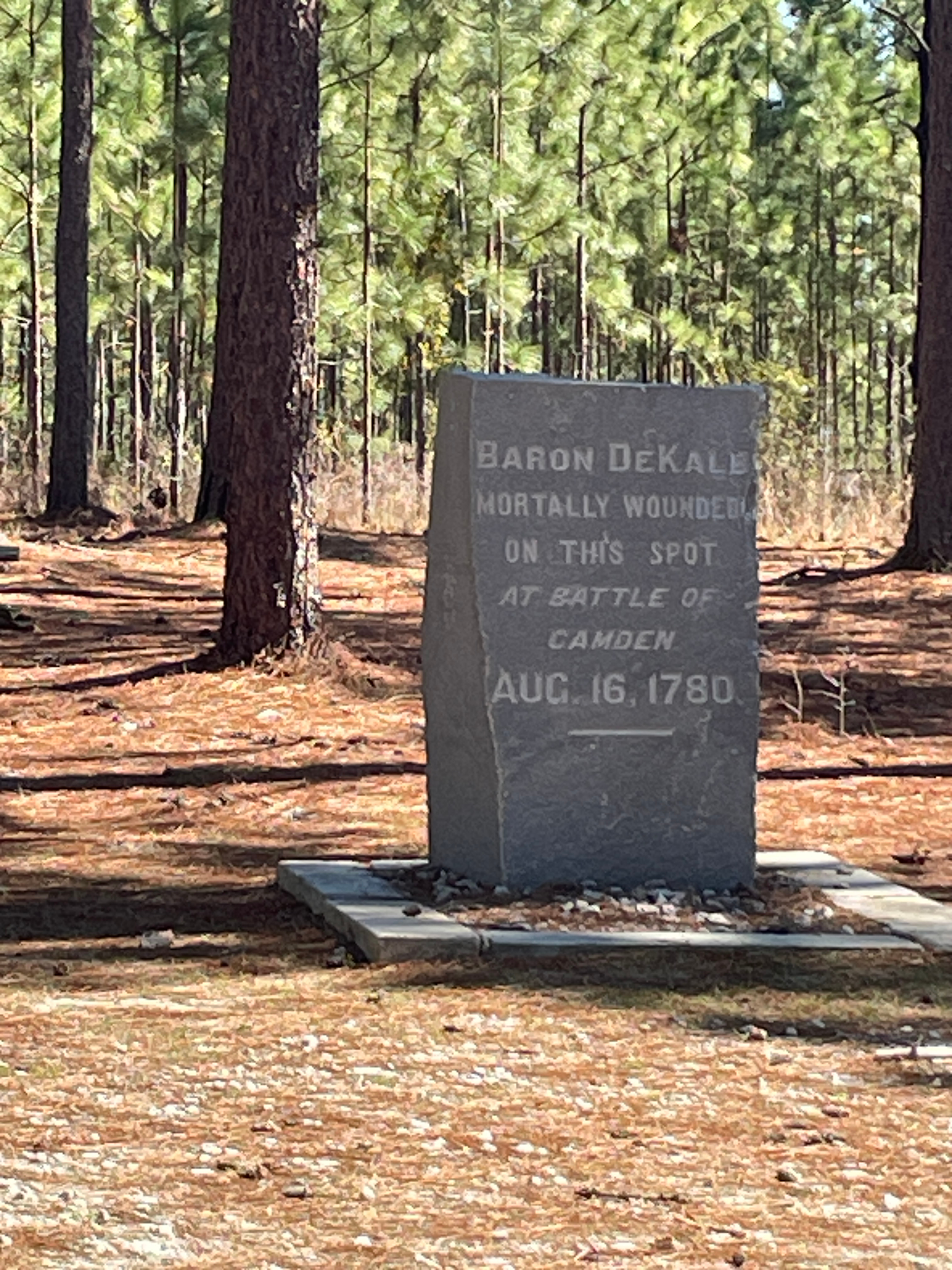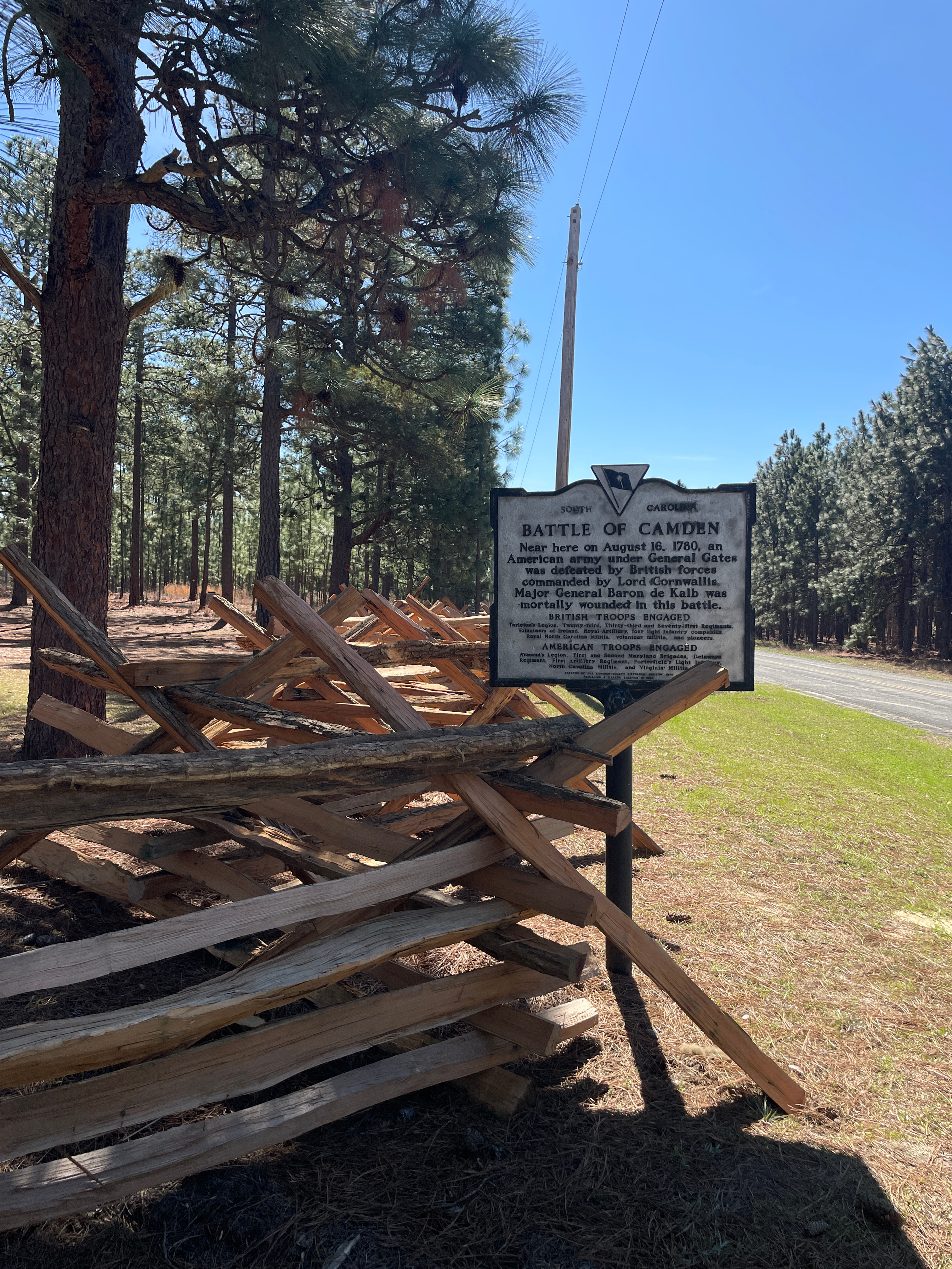 As you arrive, the scene is peaceful: a rural landscape of mature longleaf pine forests that belies the chaos of August 16, 1780, when British forces under Lord Cornwallis crushed the larger American army led by General Horatio Gates — the Patriots' worst defeat of the war.